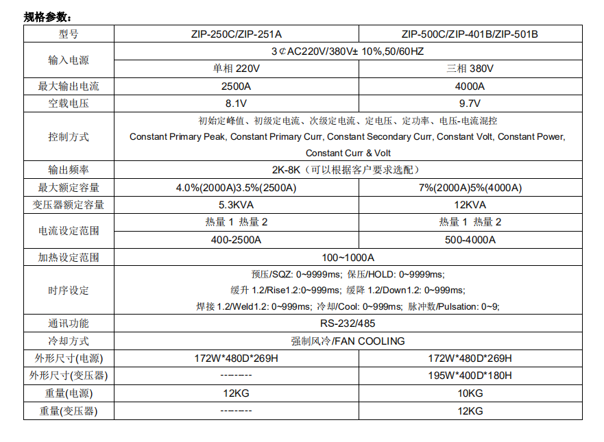 逆變點焊電源的研究涉及焊接,涉及焊接,電子電力,磁性材料,計算機,控制理論等相關(guān)學科,其發(fā)展更加與電力電子學科的逆變電源技術(shù)息息相關(guān),全球性的能源緊張和伴隨科技發(fā)展而不斷升級的應(yīng)用要求,高效率,節(jié)能和智能化的電源研究成為人們追求的一致目標。精密逆變焊接電源是近年來焊接行業(yè)出現(xiàn)的主流產(chǎn)品,因為它具有很多優(yōu)點,比如體積小,質(zhì)量輕,控制速度快,功率因數(shù)高等,本公司生產(chǎn)的精密逆變焊接電ZIP-400C為例,講述其優(yōu)點。